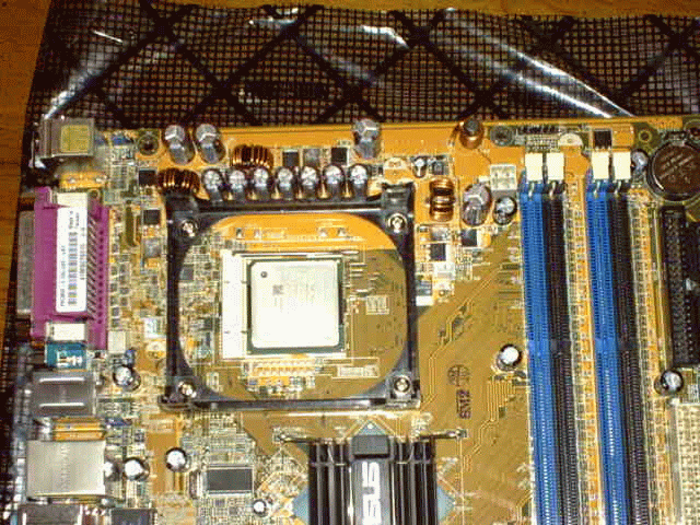 | Then I just mounted the fan/heat sink to the motherboard and locked it down with its little clamps. | ![]() |