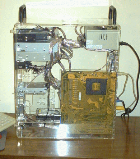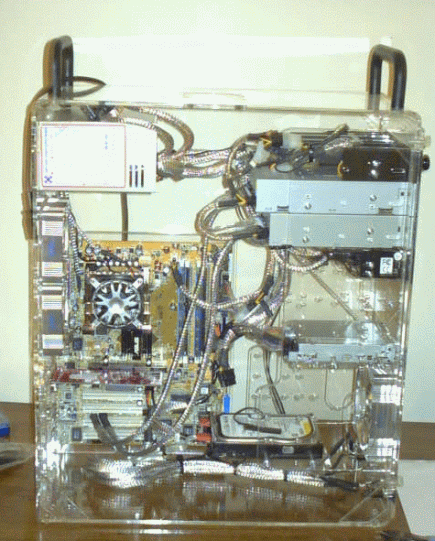 So, now it's time to attach the easy stuff (mouse, keyboard, monitor, speakers, lan, & power). I'm going to wait until the replacement hard drive comes in before using the wireless keyboard and mouse so I'm just using leftovers for now. Also, for the time being, I'm reusing my old monitor & speakers until I'm sure everything's OK. Then, I'll get a real video card and new monitor & speakers. I'll probably try the motherboard's onboard audio with the new speakers then decide if I should get a real sound card.